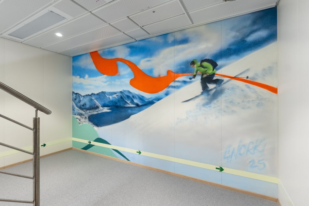 Vinnerkonseptet «Gal av lengsel» har nå fått sin fysiske form på syv vegger i boligkvarteret på Hugin A.
