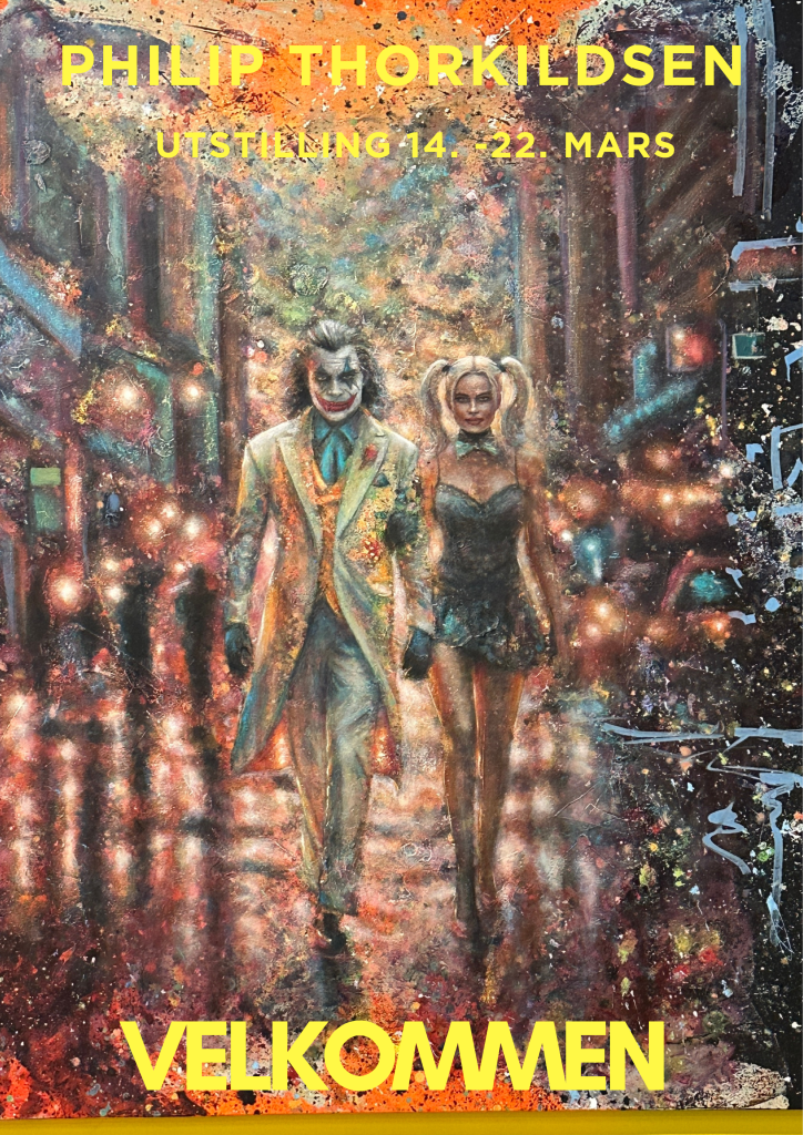 Norges første maleri laget ut i fra en AI tolkning av kunstneren og hans bilde / Joker City.